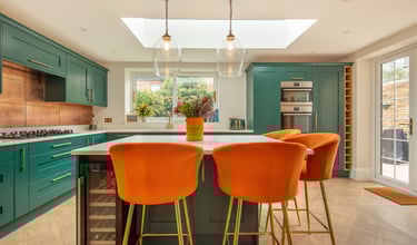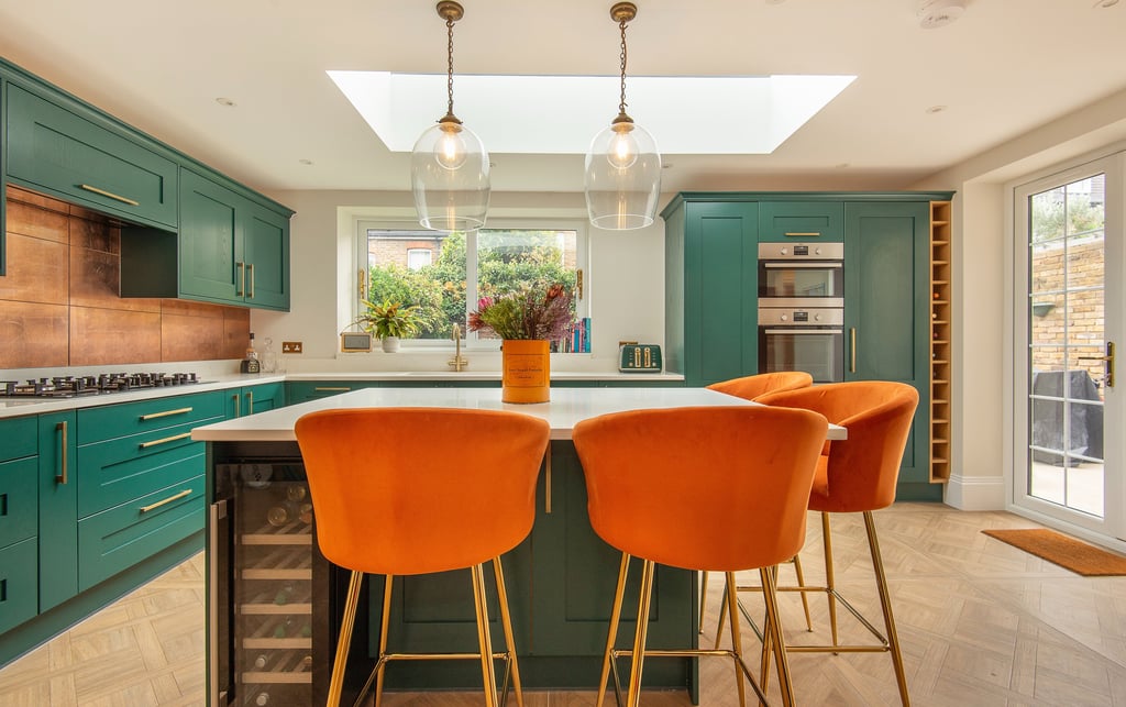 Our client asked us to come up with layouts and design schemes for their extended ground floor. They wanted to make the existing front room into an adults-only retreat with art-deco inspired details. The rest of the ground floor should be family-friendly, including plenty of storage for books, a generous dining space, and a breakfast bar. We also provided the client with a detailed sourcing document and technical drawings for the design of the dining area banquette. The Client is currently in the process of implementing the project! Photographs of finished space coming soon...